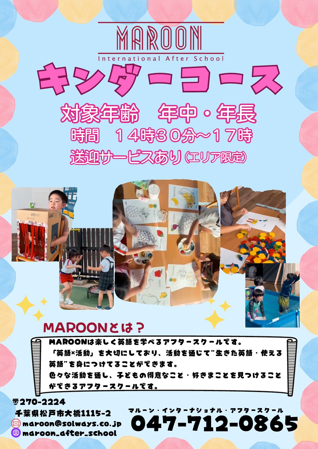 様々なアクティビティを通して子どもたちが自分の得意なこと、好きなことを見つけ、将来に活かしていければと思います。